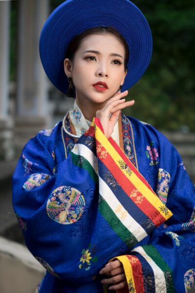 Áo Ngũ Thân Tay Chẽn vải Gấm dệt, tafta in hoa văn cho thuê 200-300k