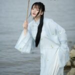 Mã thuê A133: Fullset Tấc tơ xanh trời thêu hoa cúc họa mi (unisex)