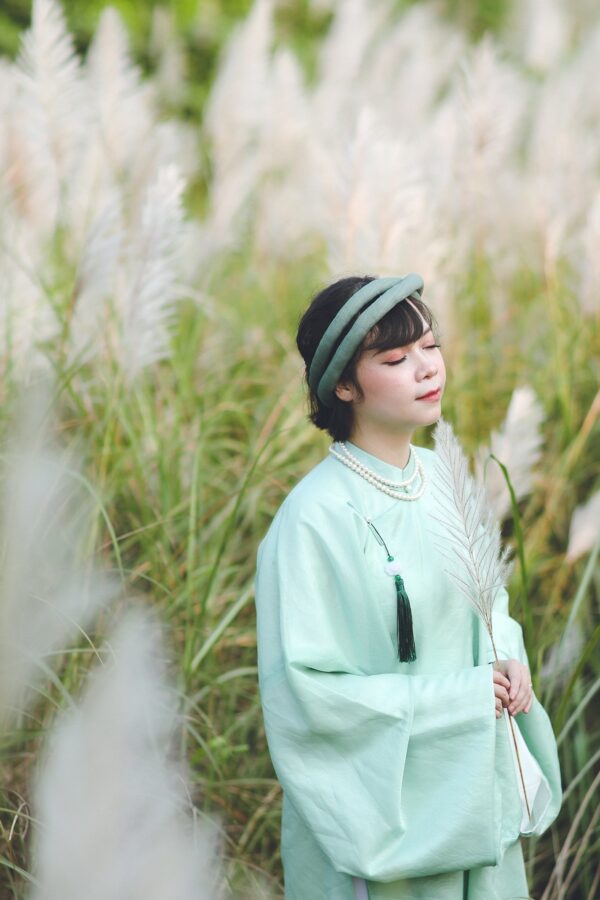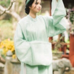 Mã thuê A4: Fullset áo Tấc tơ vân thủy ngư xanh lục nhạt lót trắng cho nam hoặc nữ