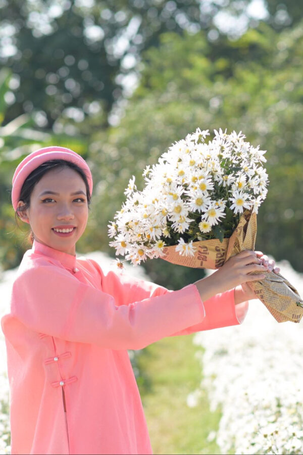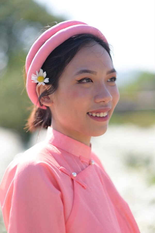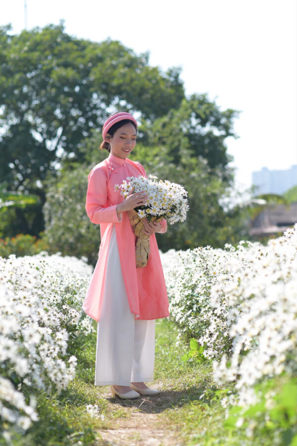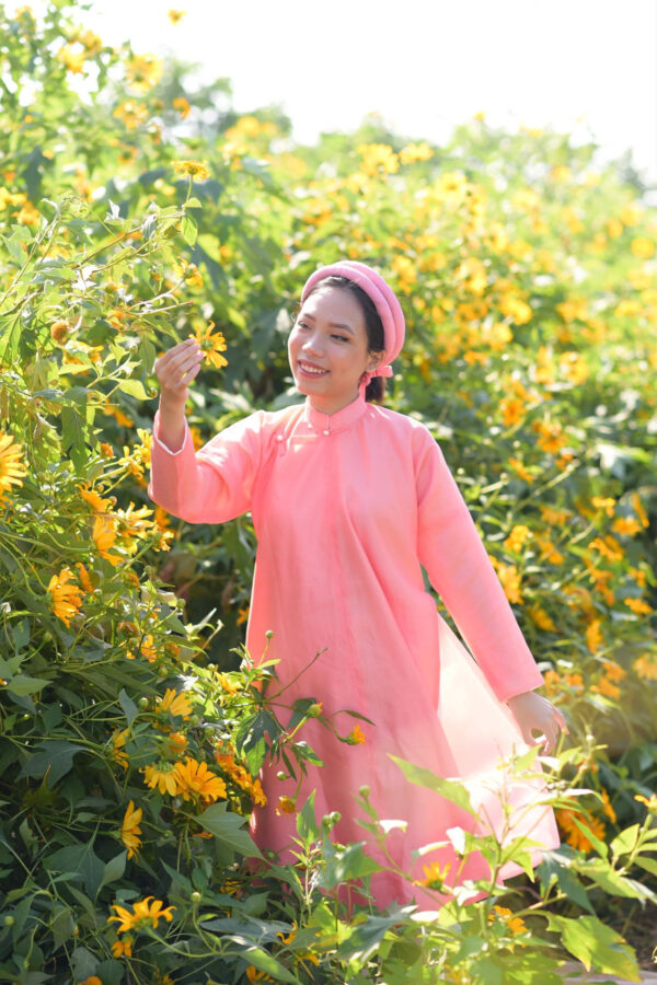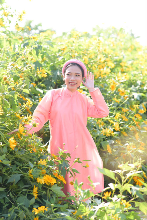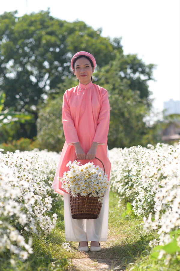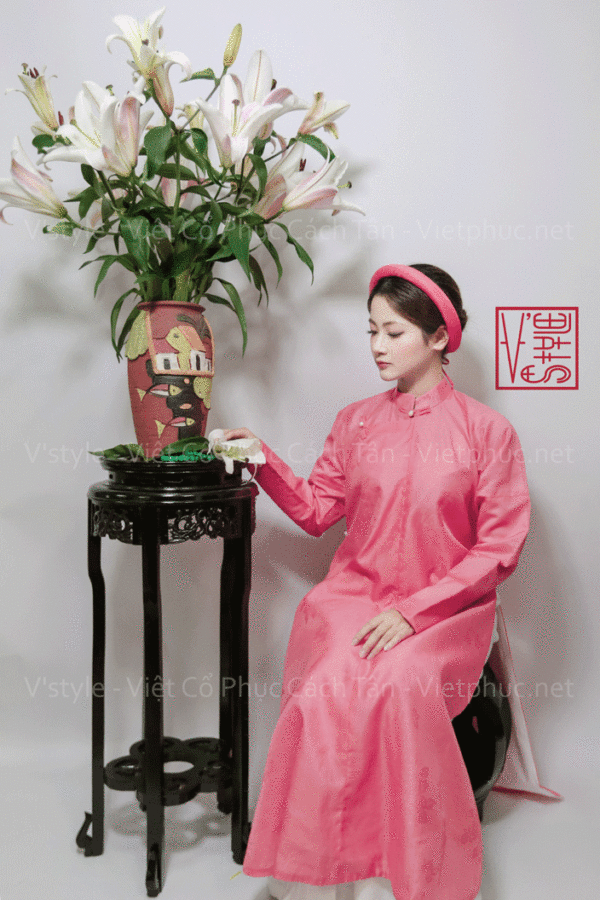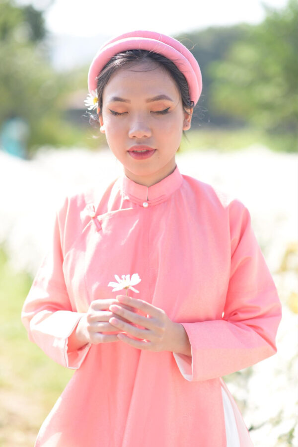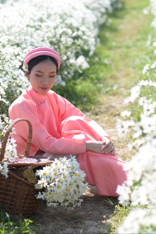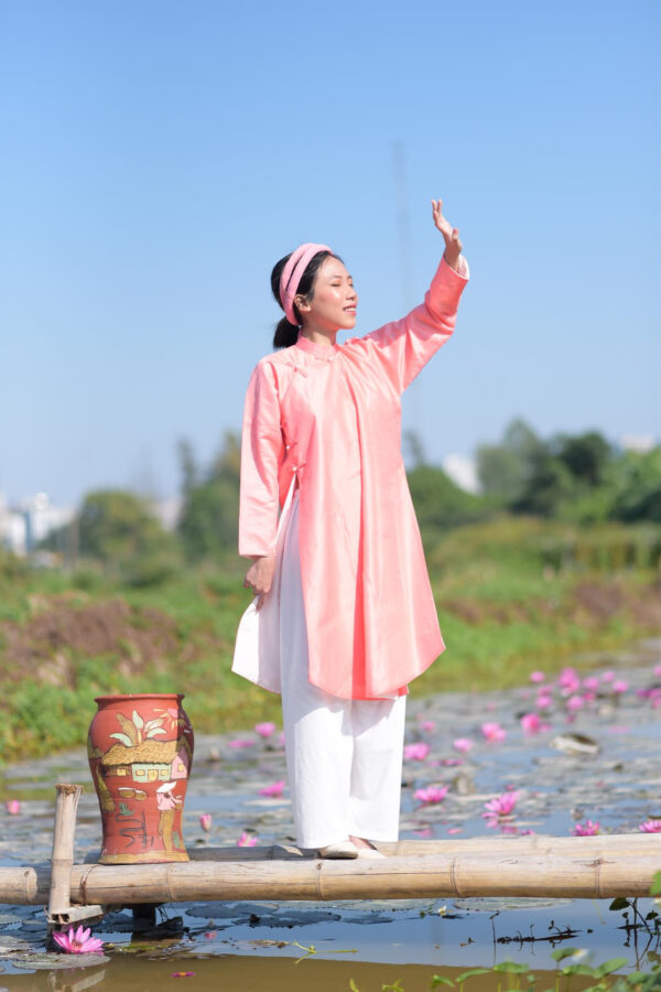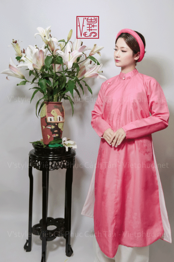 – Áo Ngũ thân tay chẽn vải sa hàn màu hồng đào lót trắng