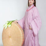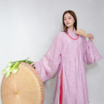 – Áo Giao Lĩnh dáng dài vải tơ hoa màu tím nhạt
