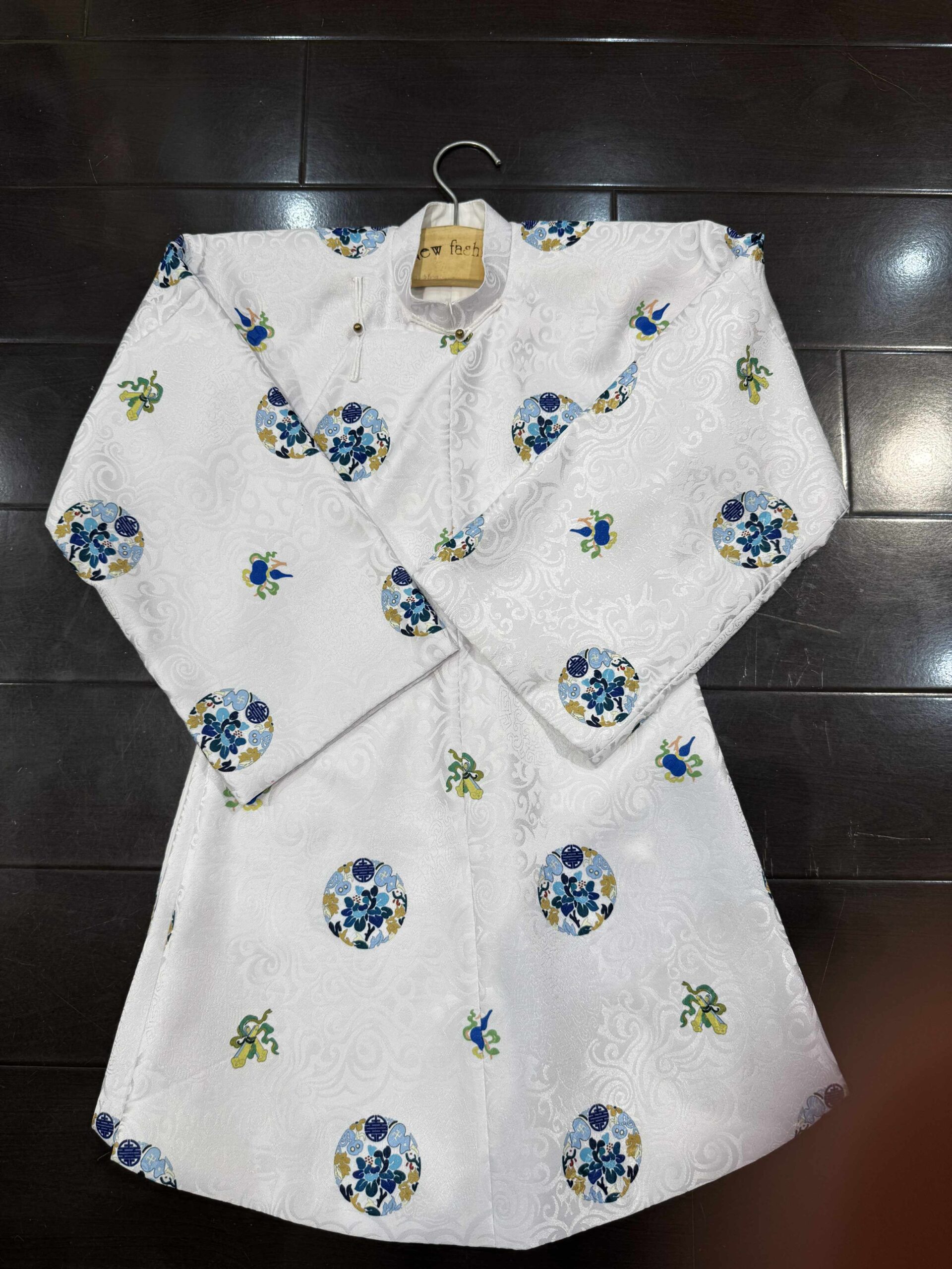 – Áo Tấc vải gấm in hoa văn màu trắng, cho bé