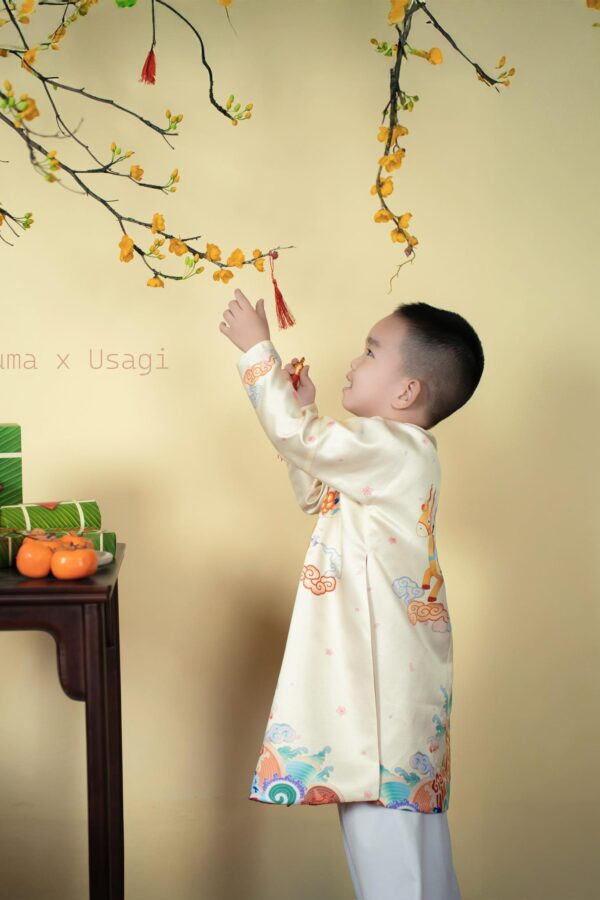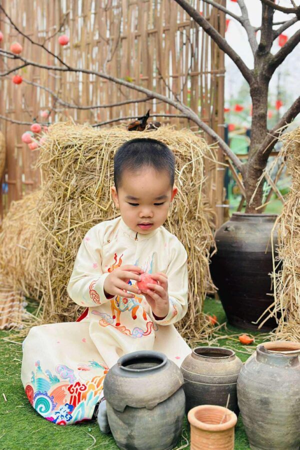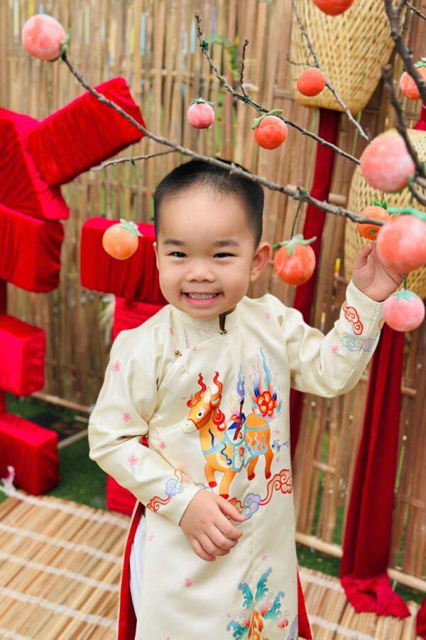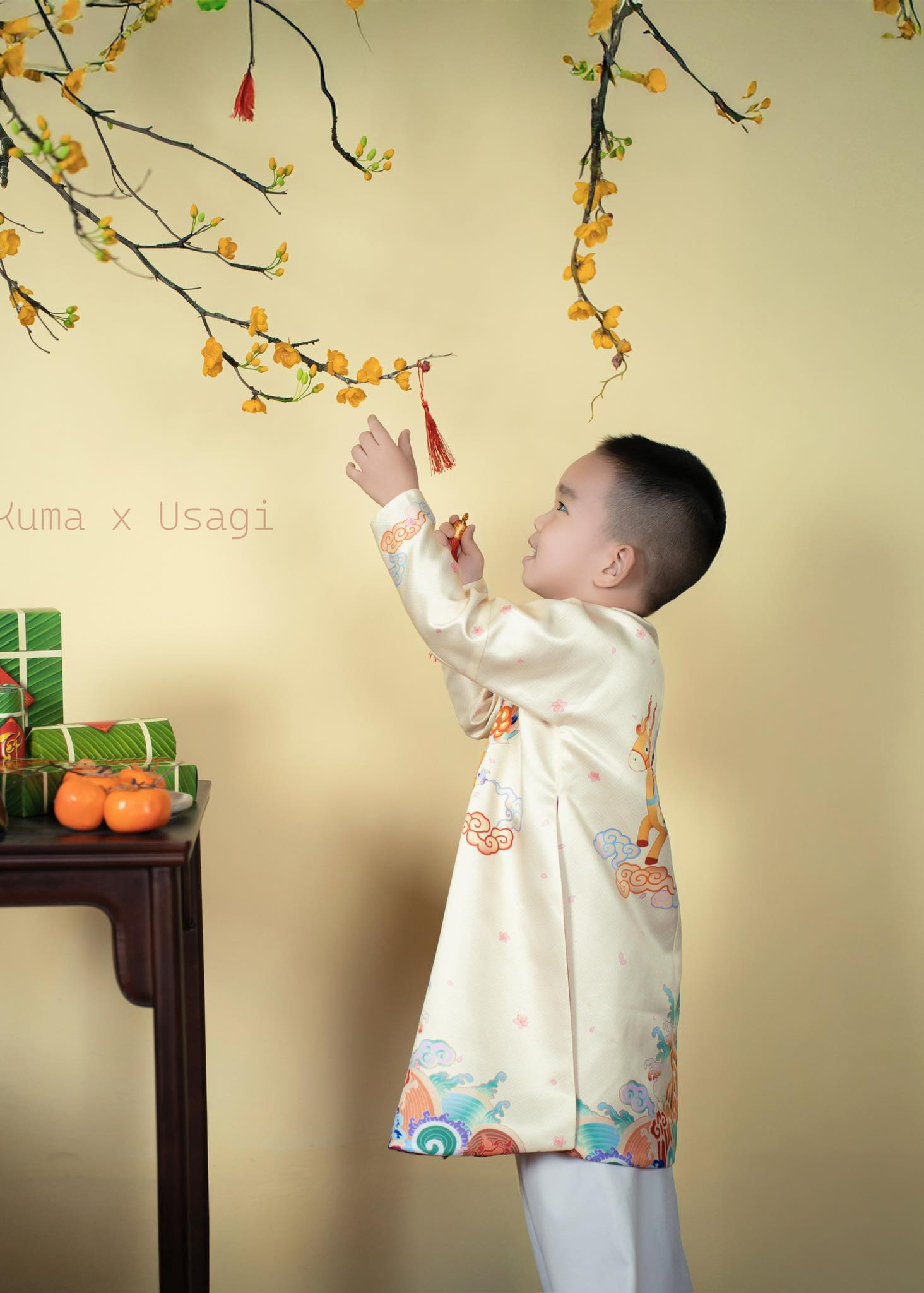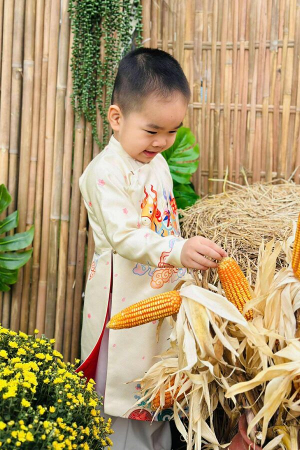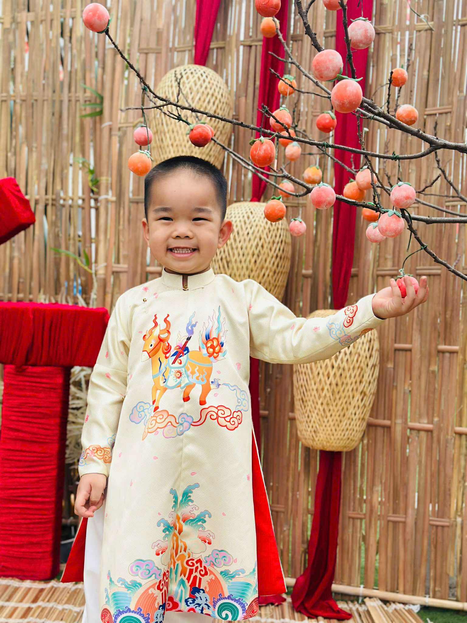 – Áo Tafta in Bính Ngọc màu kem (Unisex), cho bé