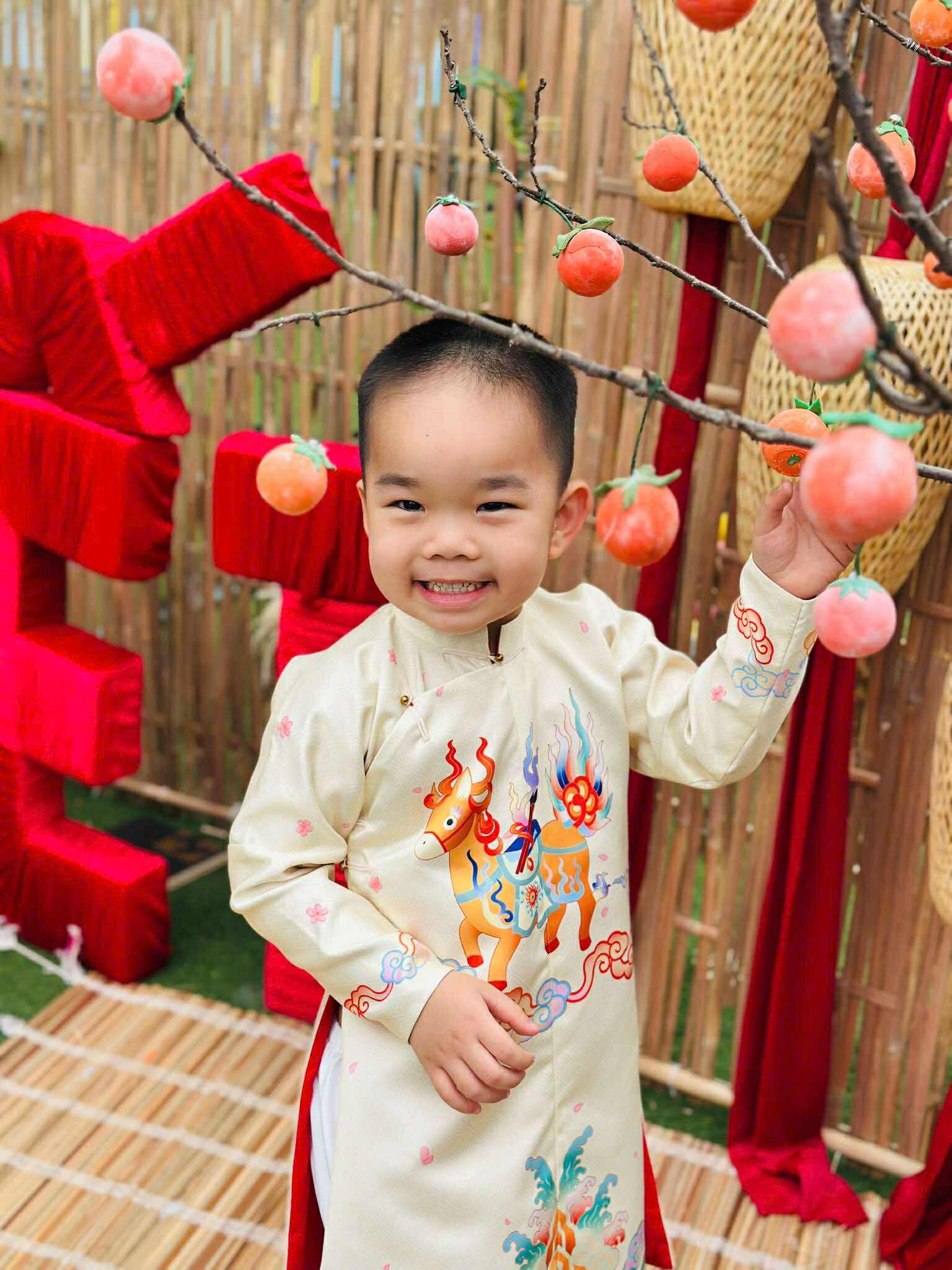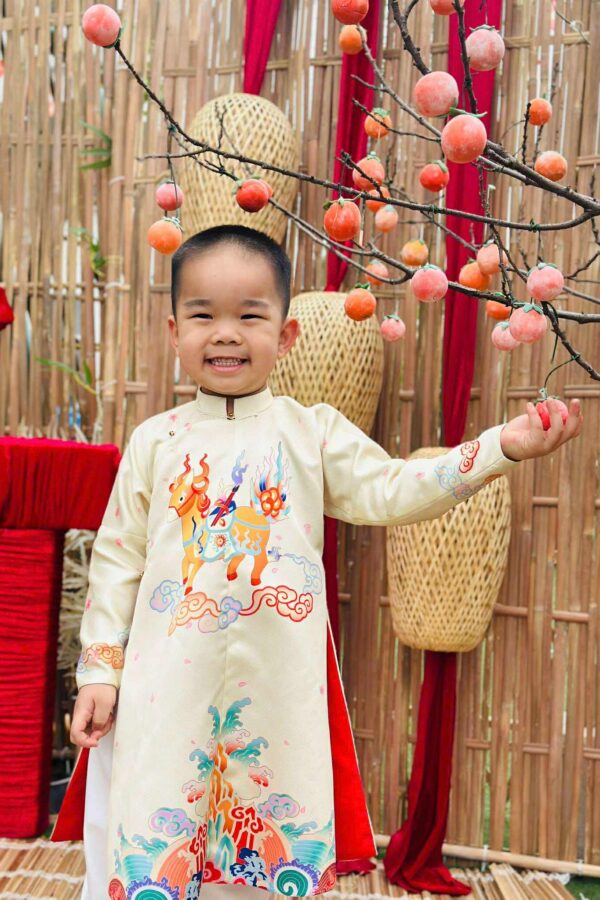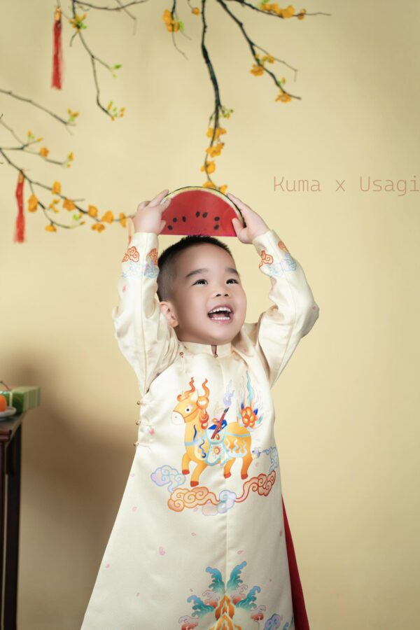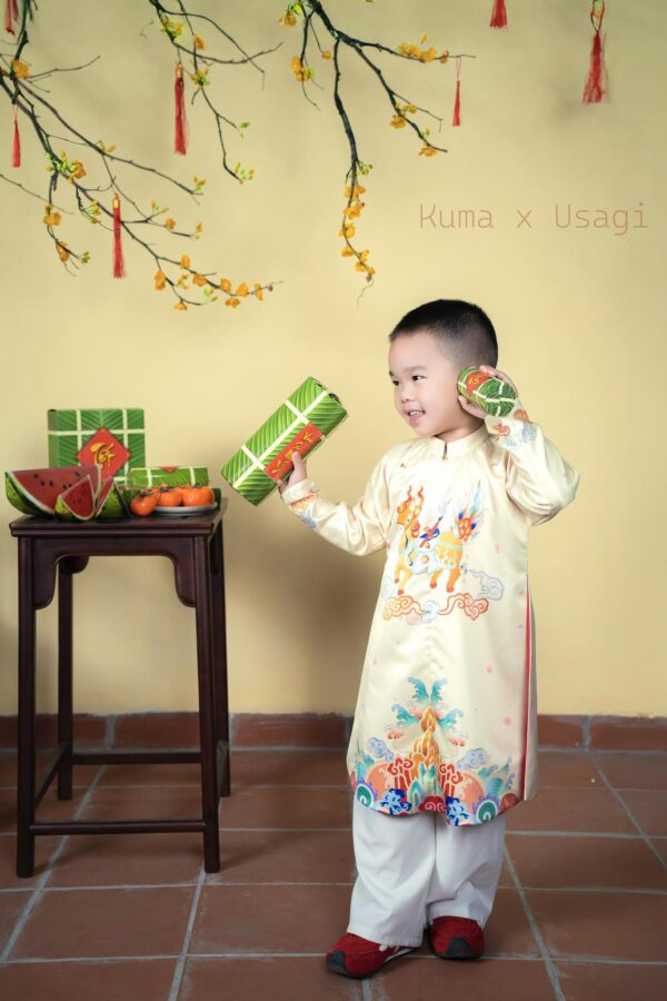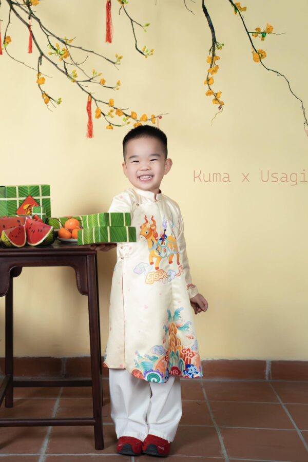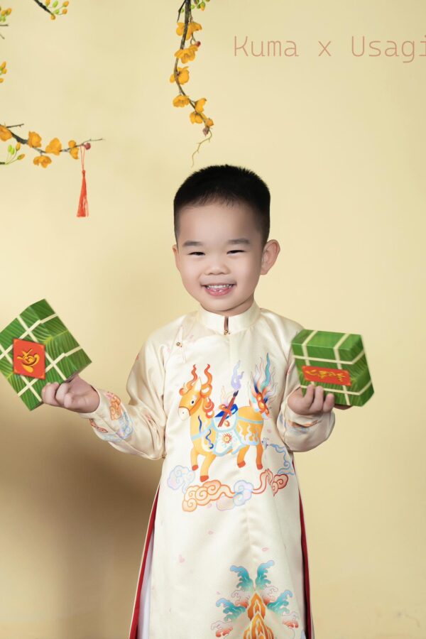 – Áo Tafta in Bính Ngọc màu kem (Unisex), cho bé