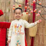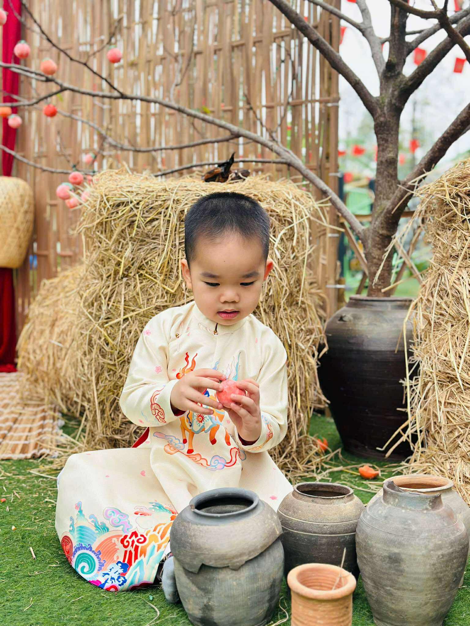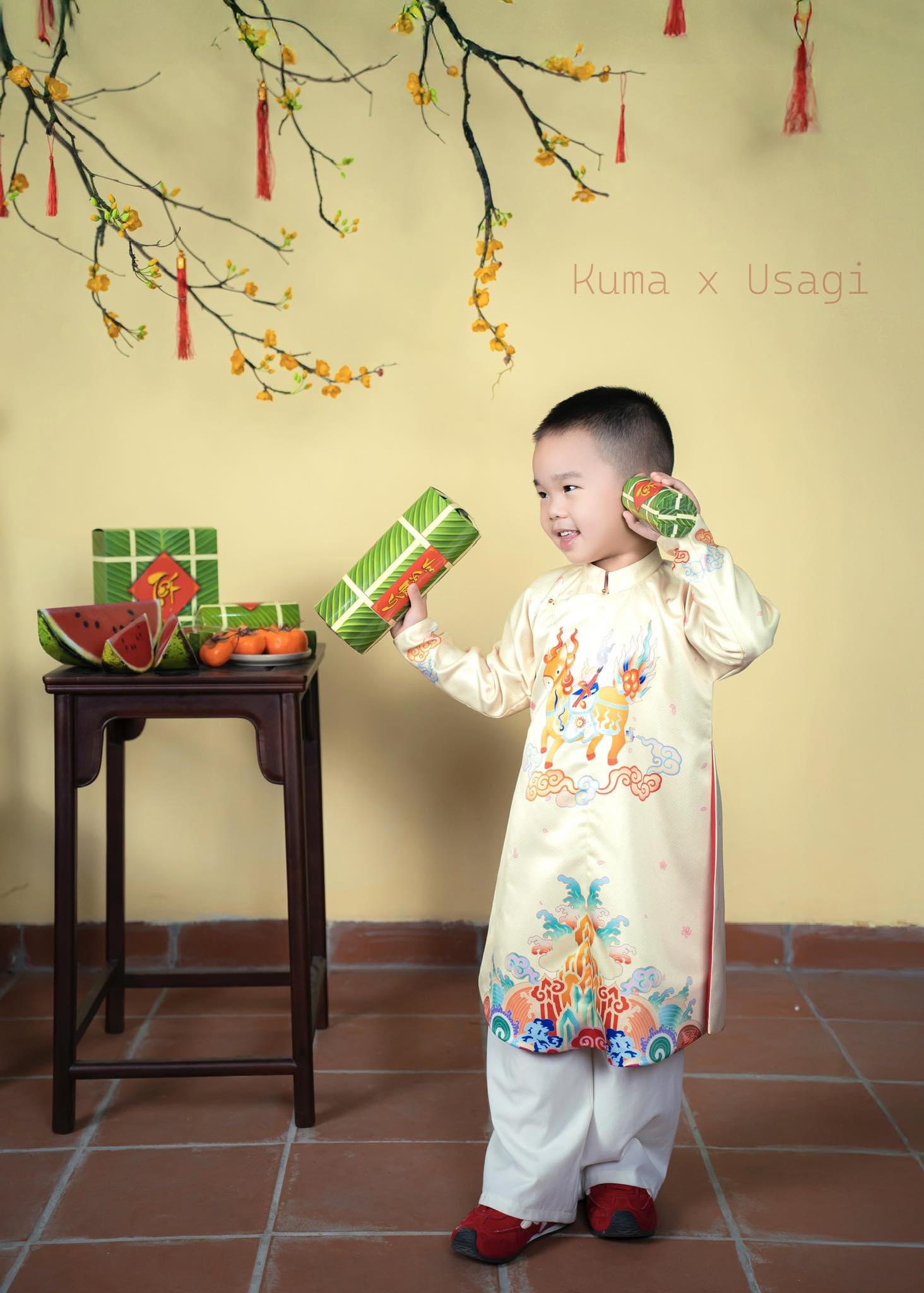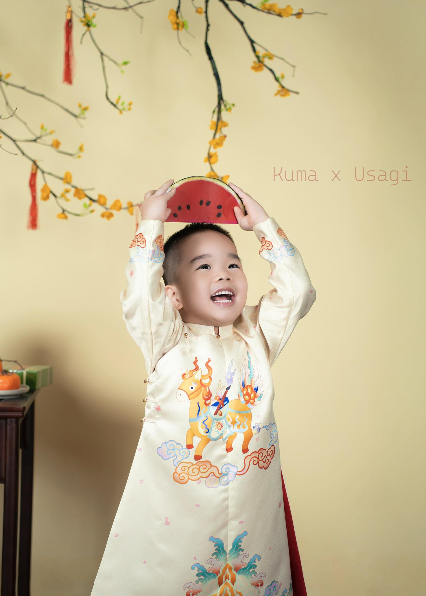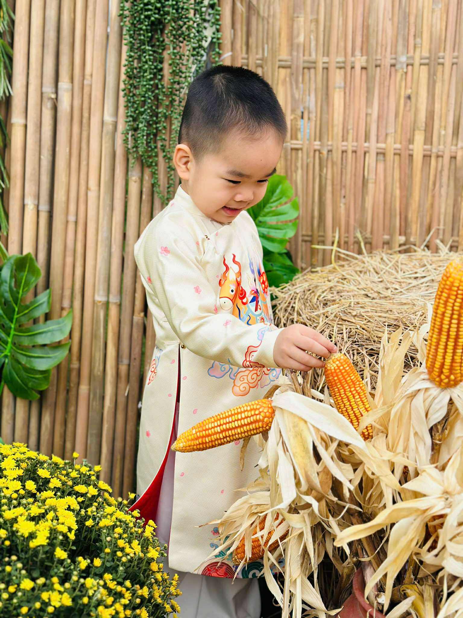 – Áo Tafta in Bính Ngọc màu kem (Unisex), cho bé