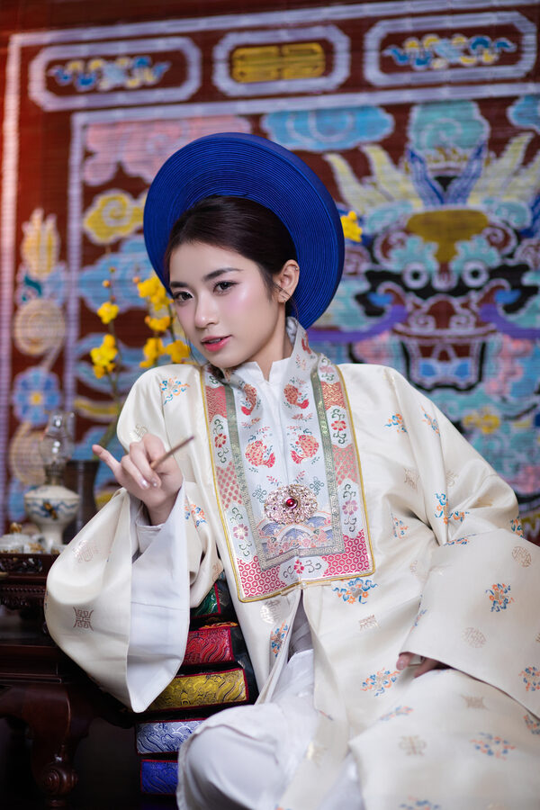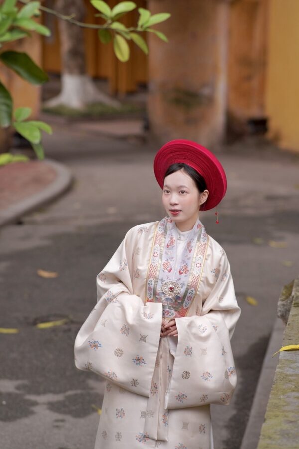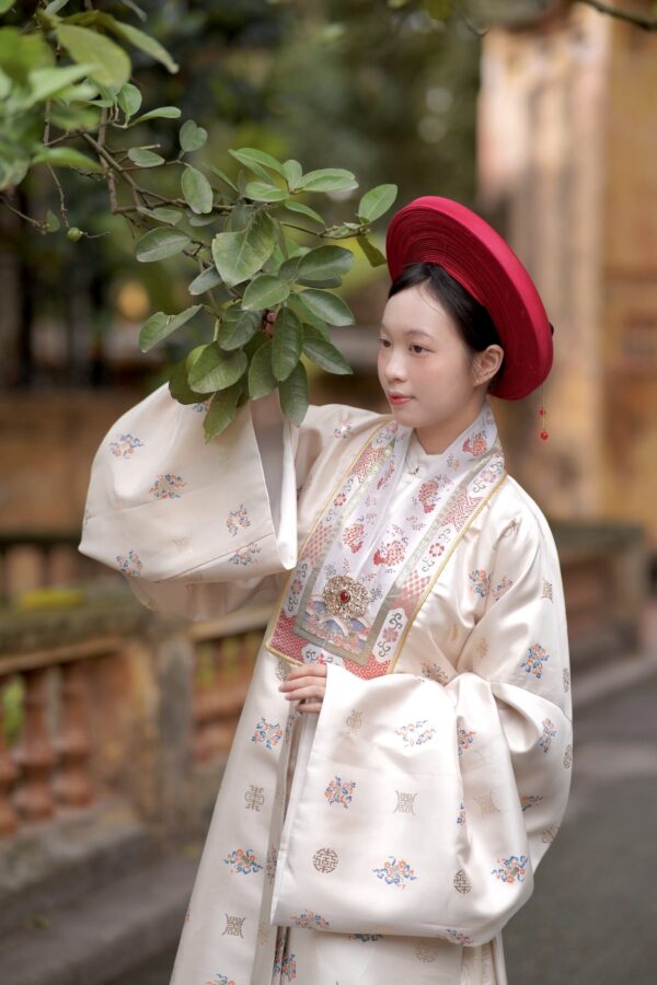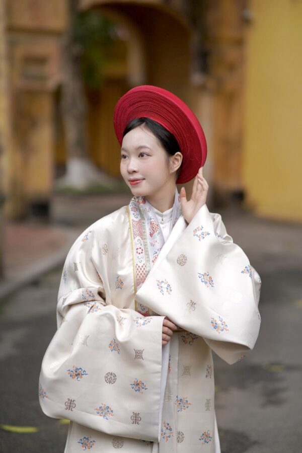– Áo Nhật bình vải dệt bát bửu be – cổ dệt lý ngư với hoa văn thiết kế độc quyền, concept đặc biệt, trên chất vải sang trọng