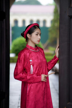 Mã thuê B101: Fullset áo Ngũ thân tay chẽn vân mây đỏ lót đỏ