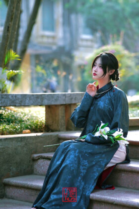 Mã thuê B10: Fullset áo Ngũ thân tay chẽn sa hàn xanh tím lót trắng cho nam hoặc nữ