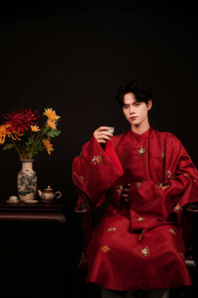 Mã thuê AT9 và AT10: Fullset Áo tấc tơ nhũ thêu Hồng Phúc cho nam hoặc nữ