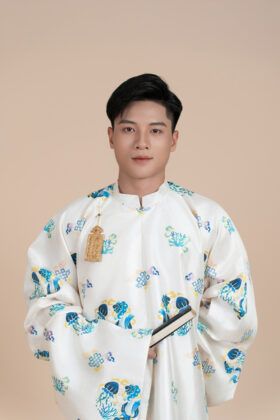 Mã thuê G33: Fullset áo Tấc tafta in hoa văn Rạn San Hô (Corel reef) (mẫu nam mặc)