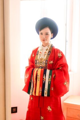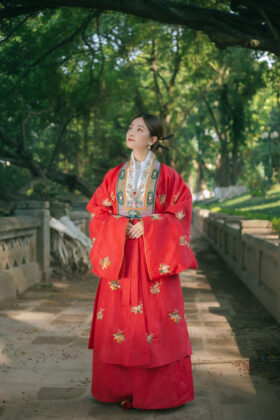 Mã thuê NBT: Fullset Nhật Bình thêu cao cấp màu đỏ kèm thường (váy quây) cho nữ